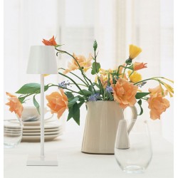 Lampe entièrement blanche et discrète, idéal pour vos tables de mariages, créer l'ambiance lumineuse de vos repas, d'un discourt, de la soirée simplement avec une tablette incluse.