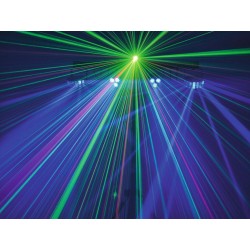 barre de 6 effets lumineux fournit avec une télécommande sans fils jusqu'a 30m. Effets intégrés: 4 led strobe matricées, 1 laser multi points rouge et vert, 2 derby led, 2 changeurs de couleurs programmes de couleurs incorporé et rythme musical, livré avec pied, machine a fumée, utilisation et mise en place ultra facile en 2 minutes